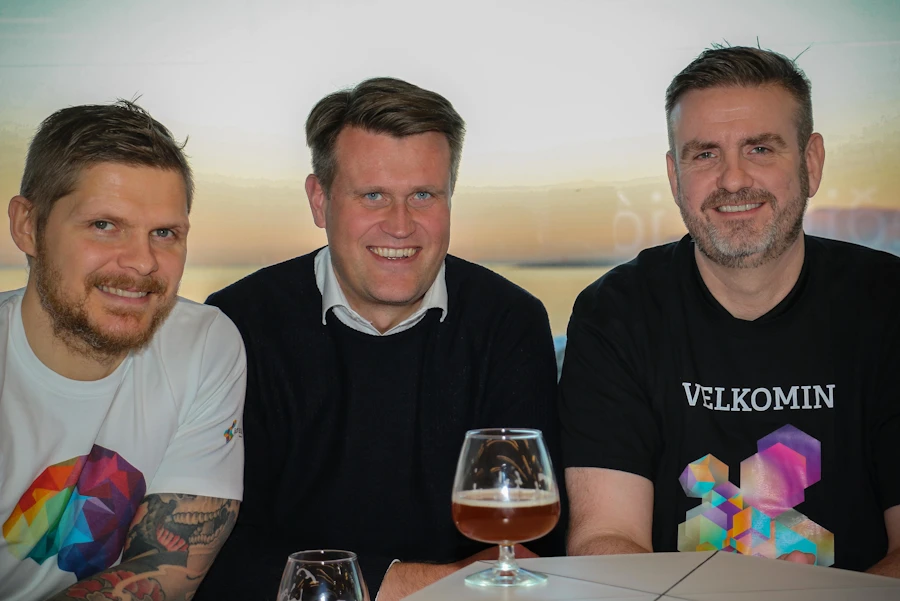 Á myndinni eru bruggararnir Ásgeir Freyr Kristinsson hugbúnaðarsérfræðingur, Ægir Már Þórisson forstjóri Advania og Hákon Róbert Jónsson verkefnastjóri hjá Advania.