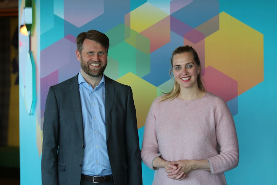 Á myndinni eru þau Ægir Már Þórisson forstjóri Advania og Ásthildur Sturludóttir bæjarstjóri á Akureyri.
