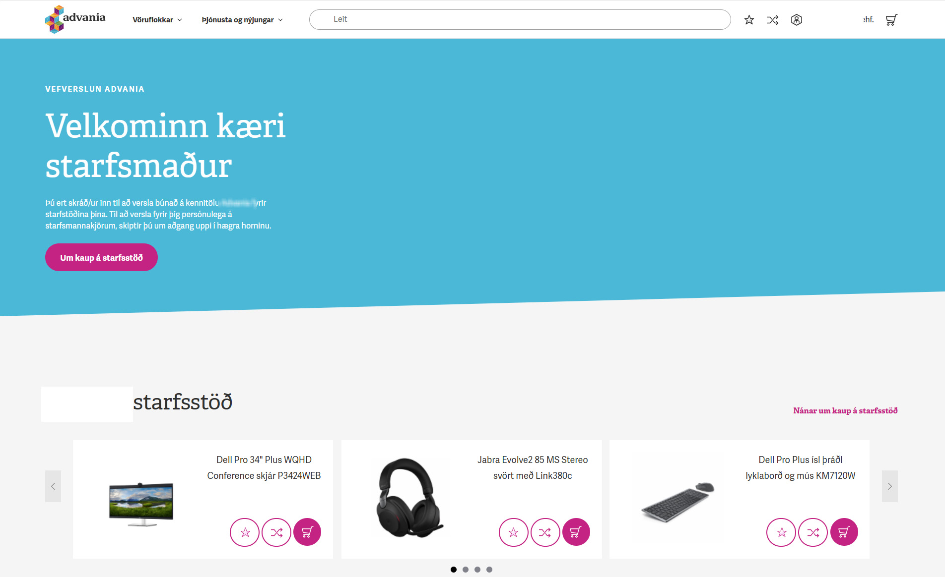 Starfsfólk fyrirtækja í viðskiptum fá vitaskuld afslátt í vefverslun. Þetta er gert á sérstaklega einfaldan hátt með svokölluðum prómókóðum og krefst engrar íhlutunar frá fyrirtækinu sjálfu. Starfsfólkið einfaldlega skráir sig inn og setur nafn vinnustaðarins í Prómókóðar á Mínum síðum.