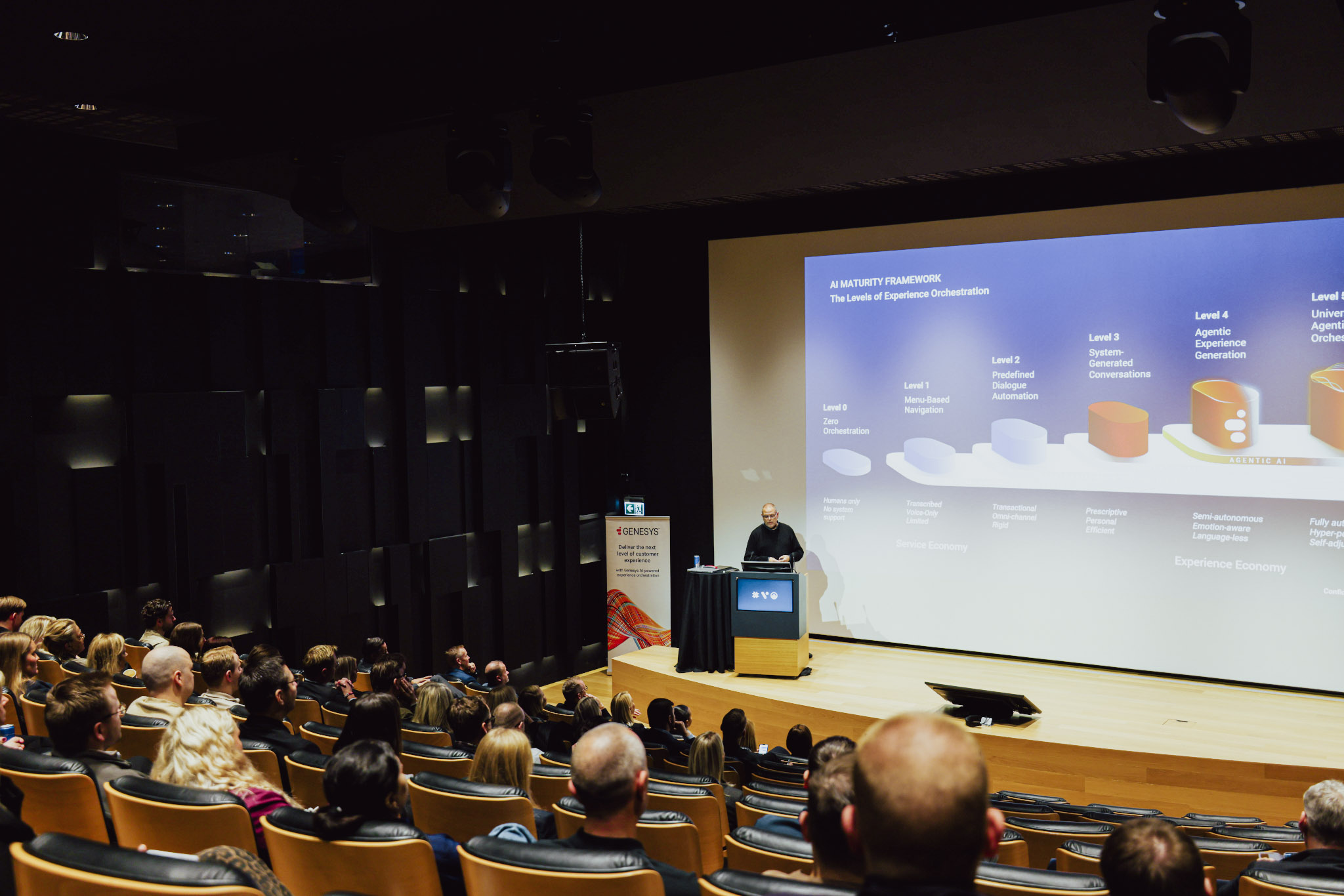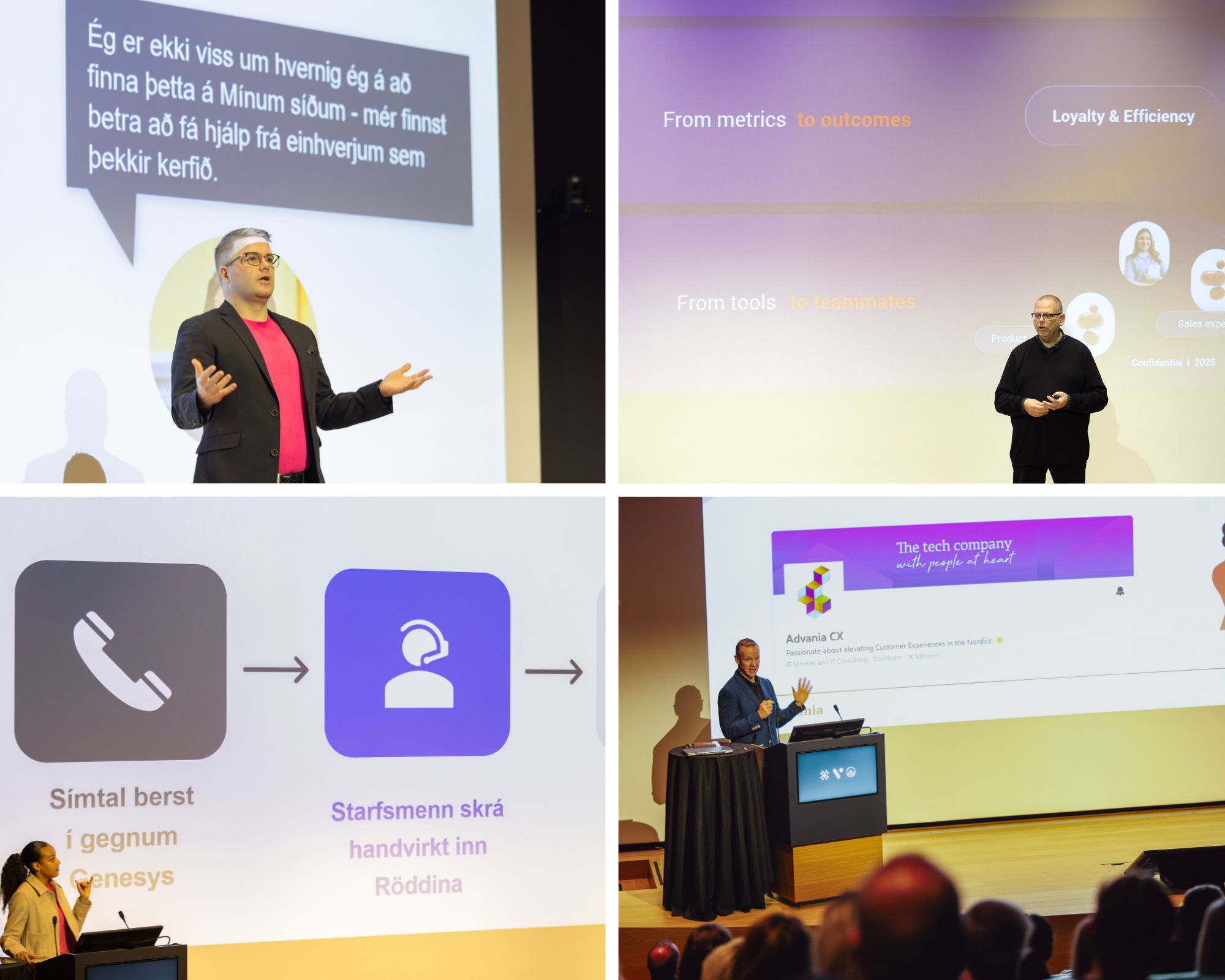 Joakim Skalberg frá Genesys fór yfir helstu strauma í Customer Experience (CX) og hvernig Agentic AI er að umbreyta þjónustuumhverfinu. Hann kynnti einnig nýjustu upplýsingar úr vörukorti (Roadmap) Genesys og sýndi lifandi kynningu á nýju viðmóti kerfisins. Þar kom skýrt fram hvernig kerfið getur aðstoðað þjónustufulltrúa við að leysa mál hratt og örugglega, auk þess sem það einfaldar flokkun og eftirfylgni á fyrirspurnum viðskiptavina.